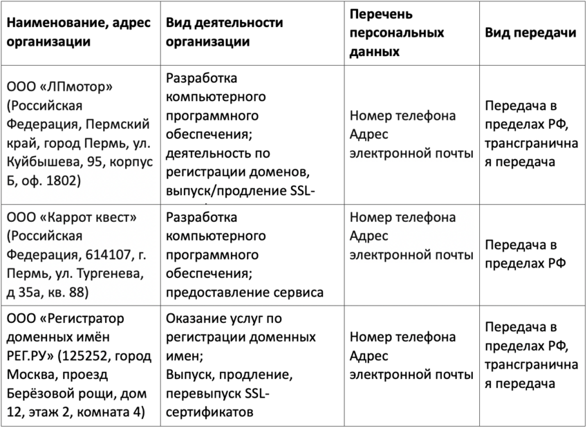4.2.8. Не использовать домен (домены) и/или SSL-Сертификат в целях совершения противоправных действий и/или в целях нарушения прав и интересов третьих лиц.